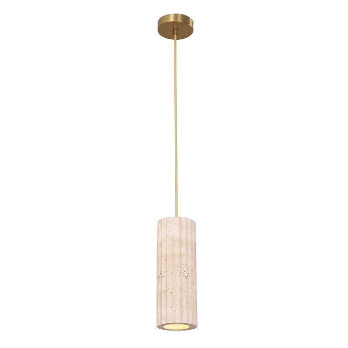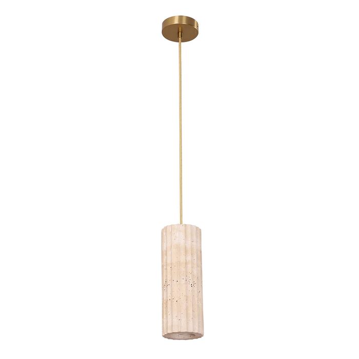 Crafted from authentic travertine and complemented by refined brass accents, this pendant blends organic texture with modern sophistication.