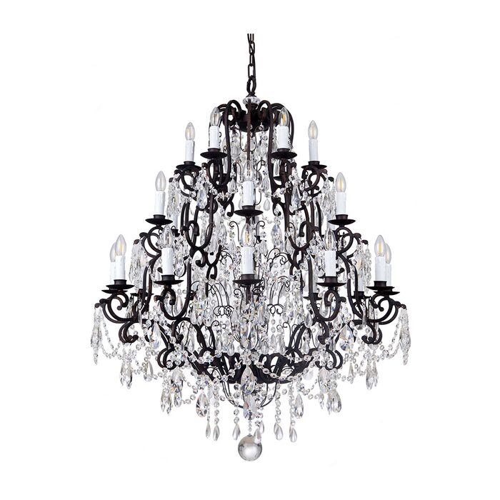 The Salzburg 24 light chain suspended chandelier will be pure joy for lovers of the traditional chandeliers with crystals and will need look no further than this european-inspired designed chandelier decorated from top to bottom with large crystal drops, pendalogues and strands of crystal beading and its bronze finished frame giving a striking bold contrast.
