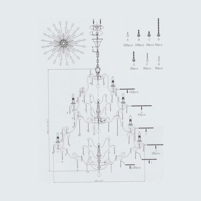 This exquisite fitting is the perfect focal point to any sophisticated living space classic or modern. The contrast of the bronze cast iron against the crystal perfectly displays it's baroque style.