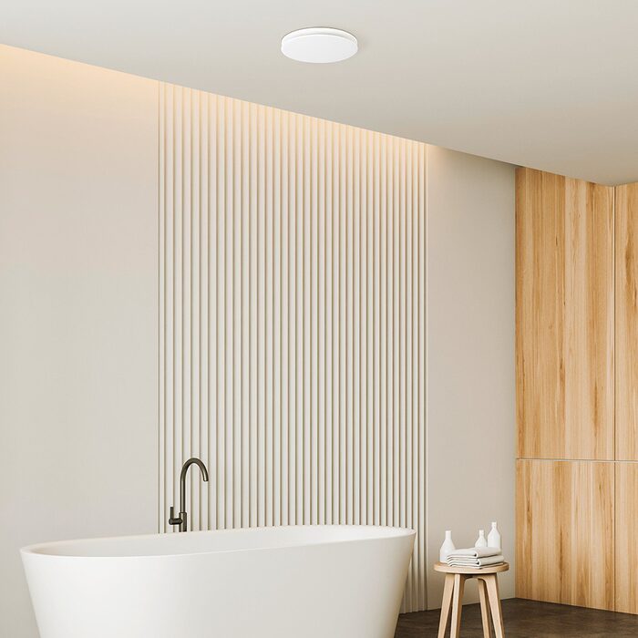 Available in matt white or matt black finishes, and with or without an intergrated LED tri-colour light.