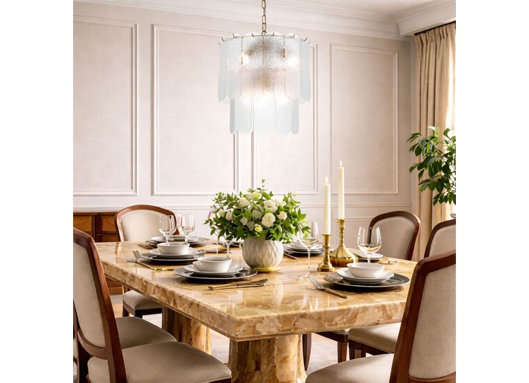 The Samona range of pendants and wall lights features textured glass in a selection of sizes, offering a warm, softly diffused glow.