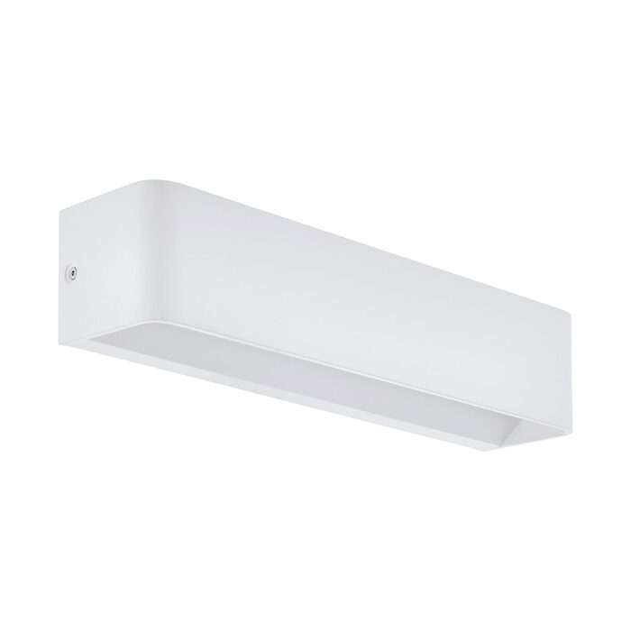 This wall luminaire of the SANIA 4 series is made of white structured powder-coated die-cast aluminium. An integrated LED illuminant gives an indirect warm white light.