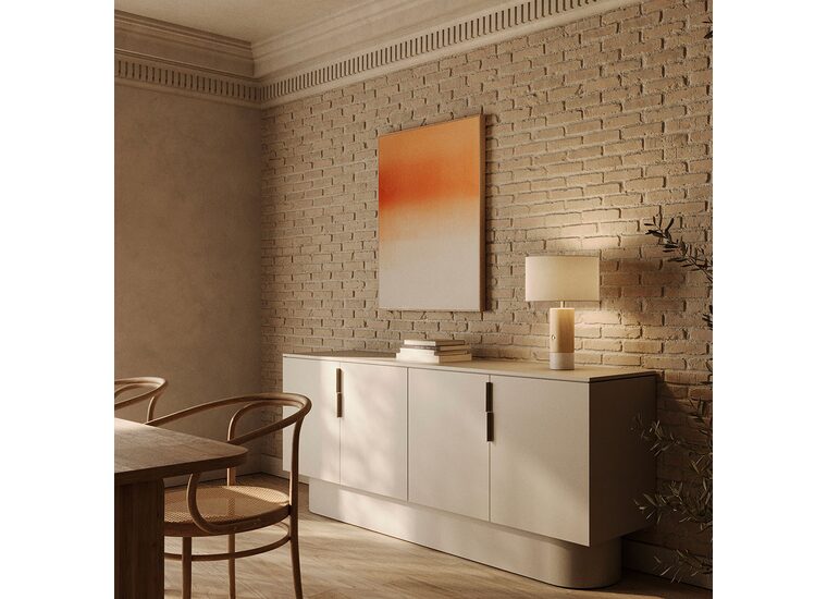 Topped with a softly curved white shade, Sano emits a diffused glow that enhances its refined silhouette.
