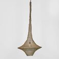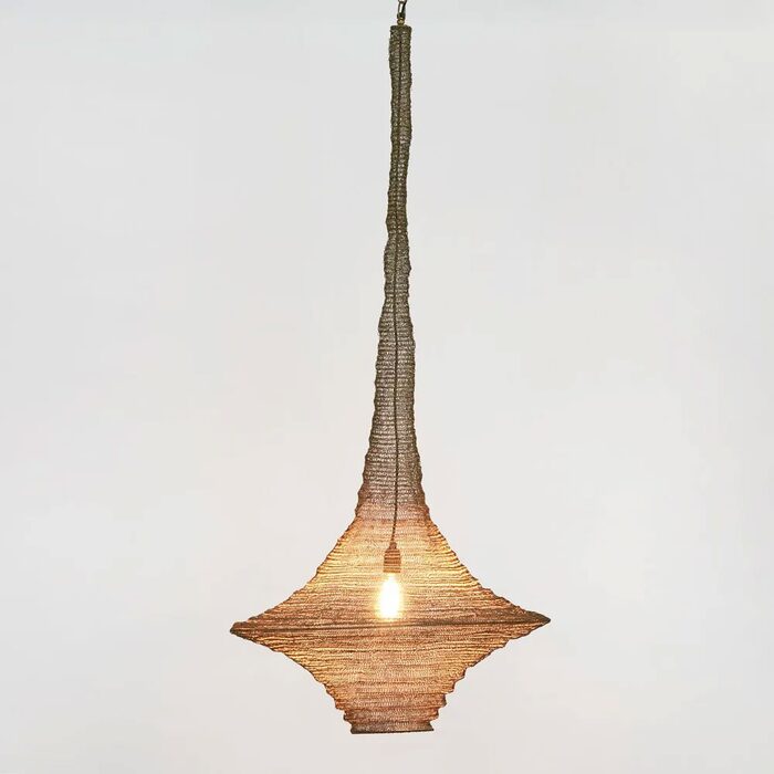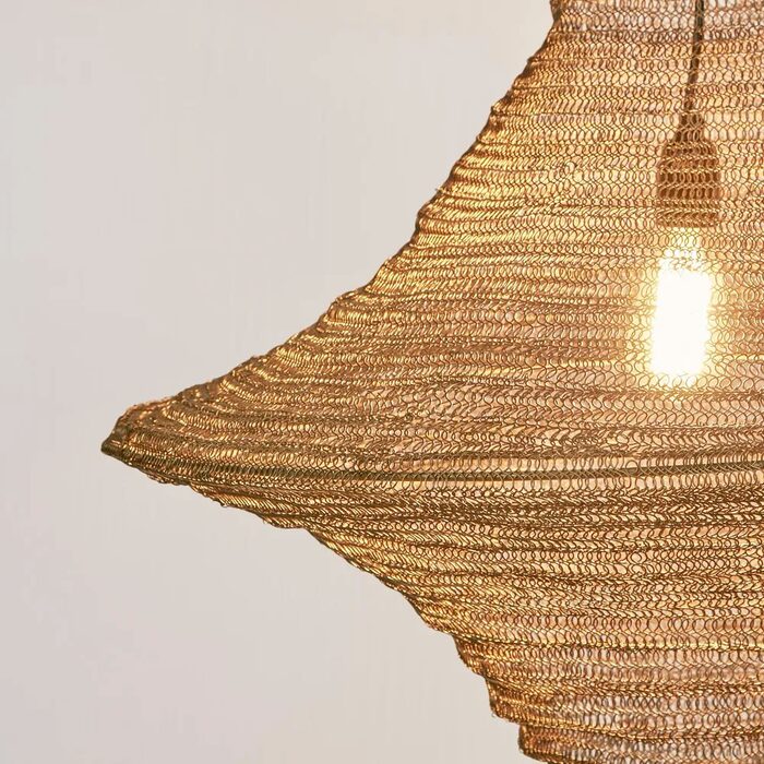The shade is made of loose weave aluminum and is suspended by adjustable cord and chain that allows you to customize the height of the lamp.