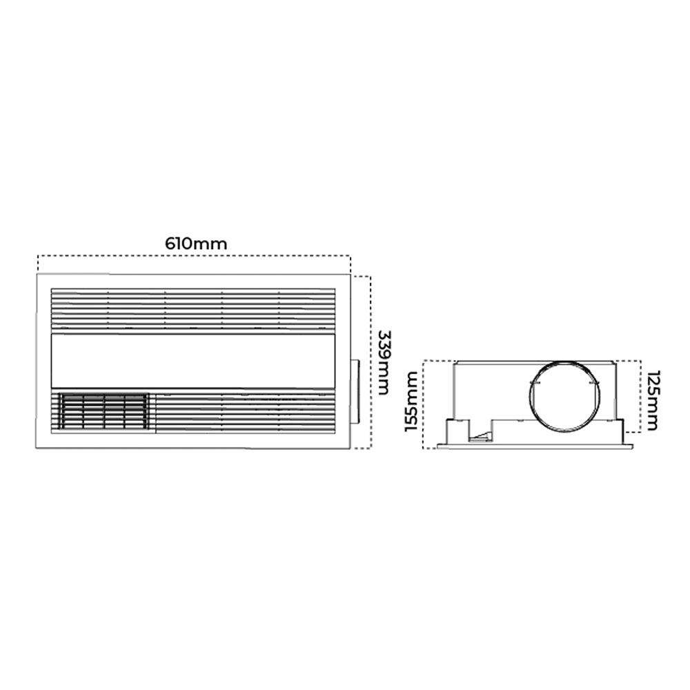 - Includes integrated draught stopper, wall switches, 1.5m duct and grill outlet