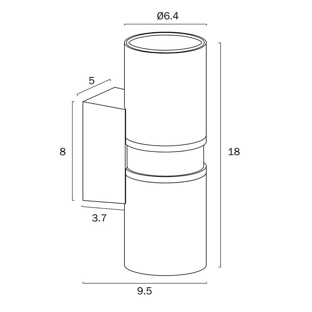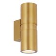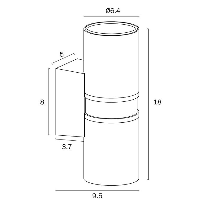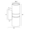 The Sarnel 2 Light Exterior Wall Light features a sleek cylindrical design that casts light both upward and downward, creating a striking visual effect.
