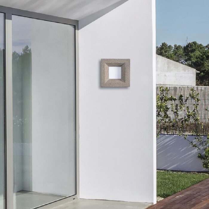 The Sarno concrete LED wall light modern rustic element to elevate to illuminate indoor and outdoor facades and features.
