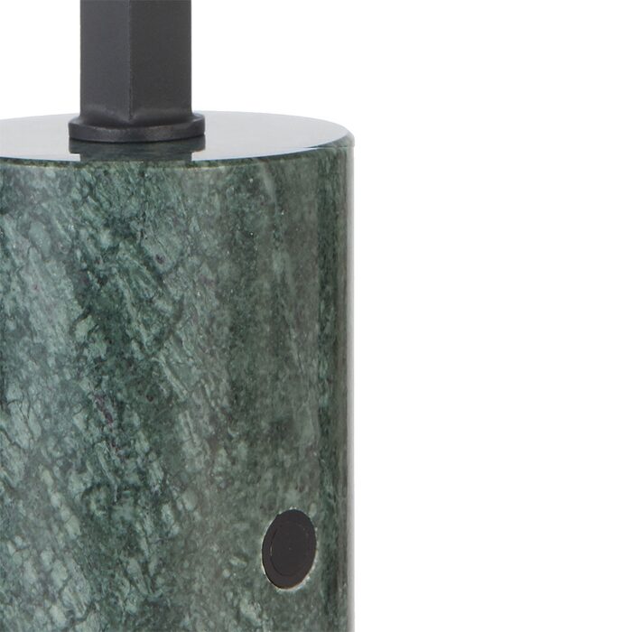 Available in black with green marble or antique brass with white marble, each finish offers a distinct balance of contrast or warmth.