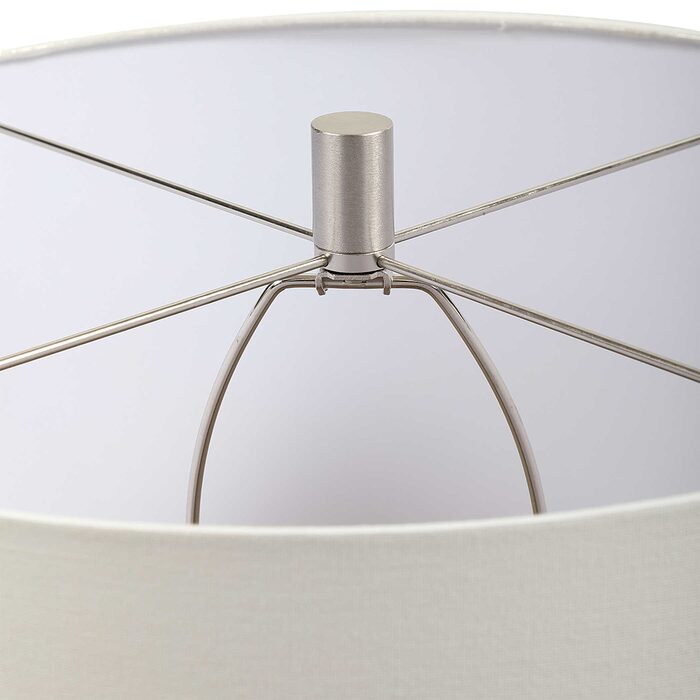 Finished in a stunning deep teal glaze, this ceramic table lamp features hand carved organic vertical lines accented with brushed nickel details.