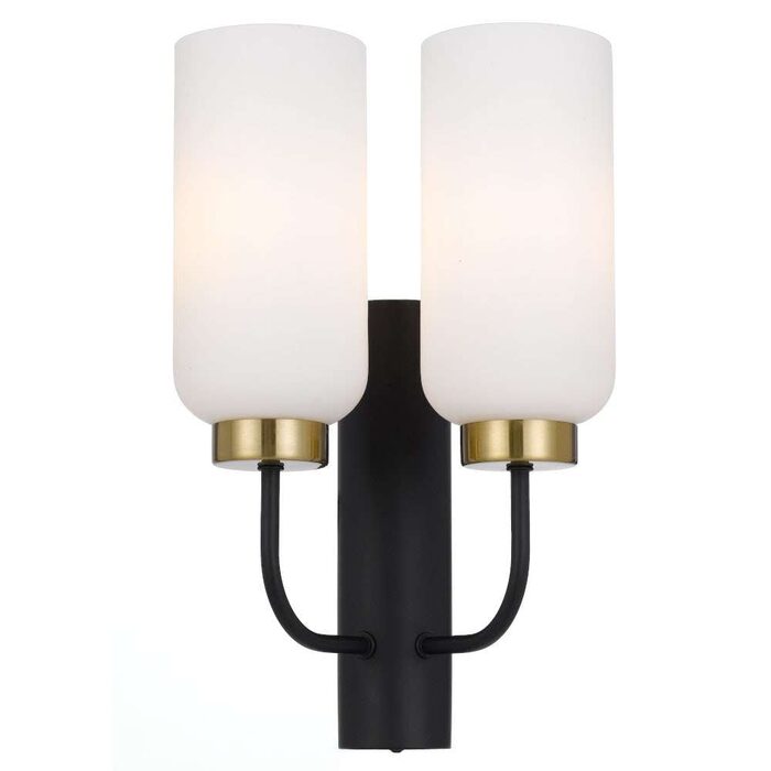 The Sebring family blends traditional with minimal. Gently curved rods extend from the center, and support the elegant opal matt glass shades, creating a warm, even ambiance. Available as a narrow and long arm 4 light, a two tier 8 light and a twin wall lamp. The on trend black finish is contrasted with accents of antique gold.