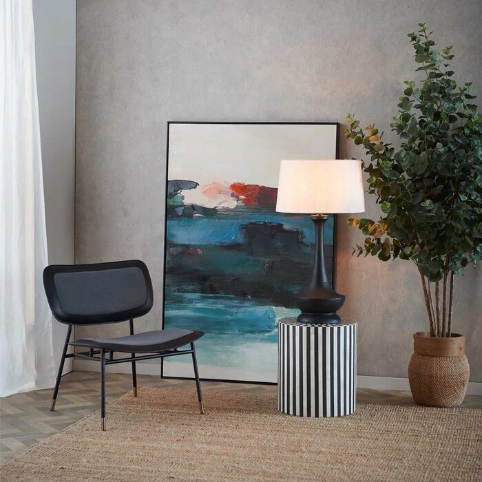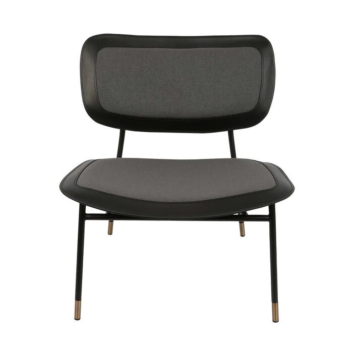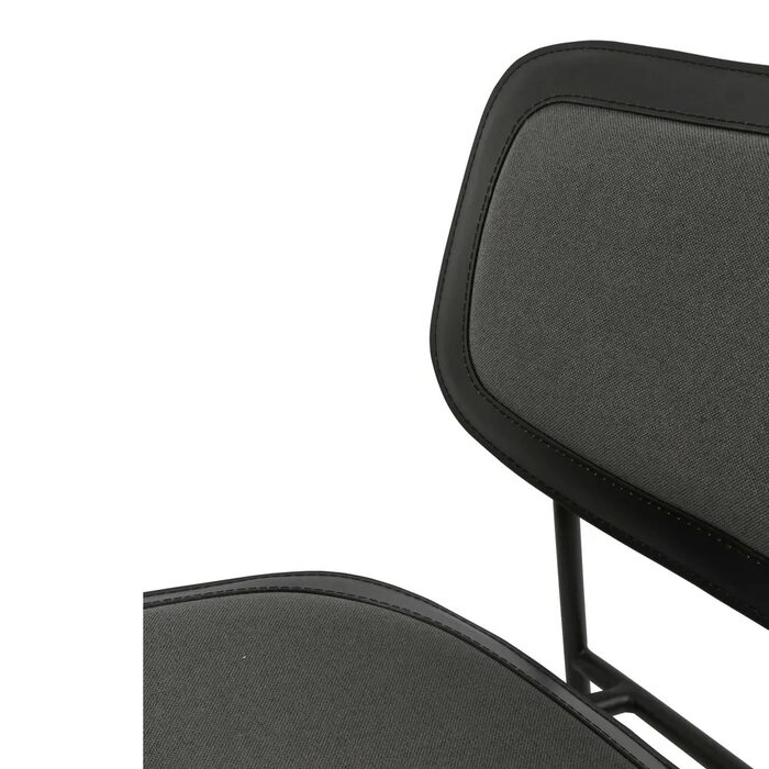 The contemporary silhouette is finished with a recycle leather seat, fabric seatback and sleek iron legs.