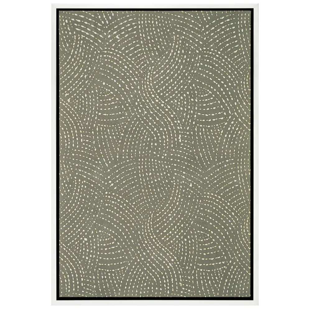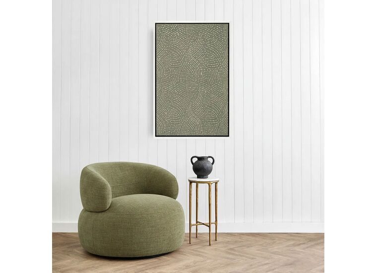 Immerse yourself in the timeless elegance of Serendipity Canvas Painting, where delicate white dotted circular patterns evoke a sense of sophistication and intrigue against a soothing olive green palette.