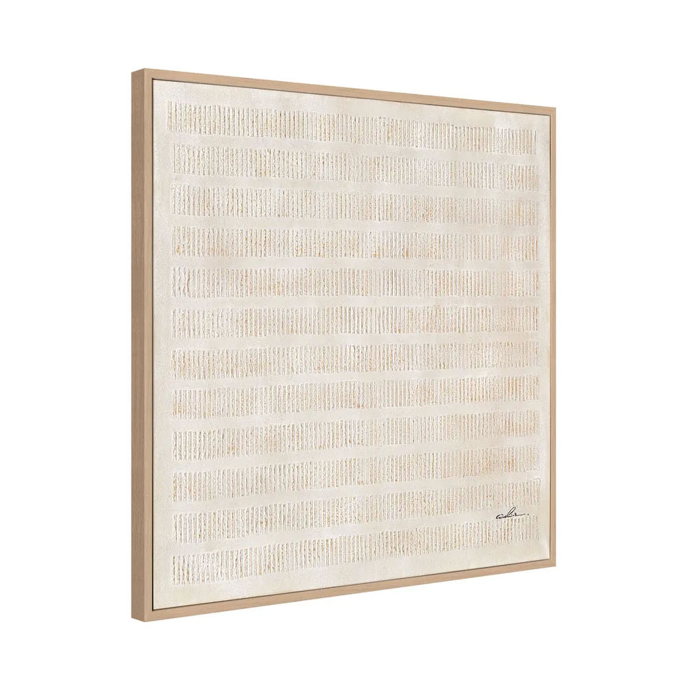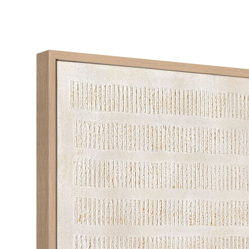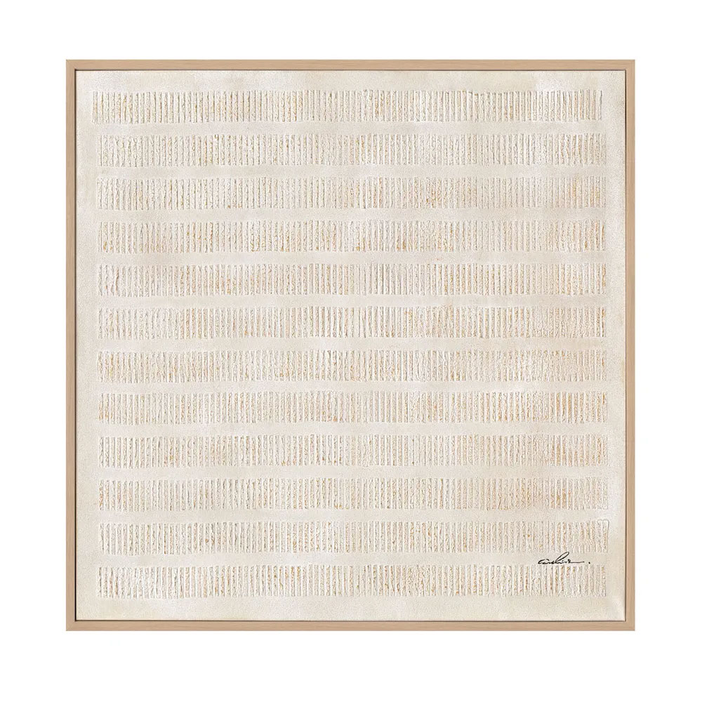 Perfect for minimalistic interiors, this piece blends soft neutrals with intricate patterns, making it an elegant statement on your walls.