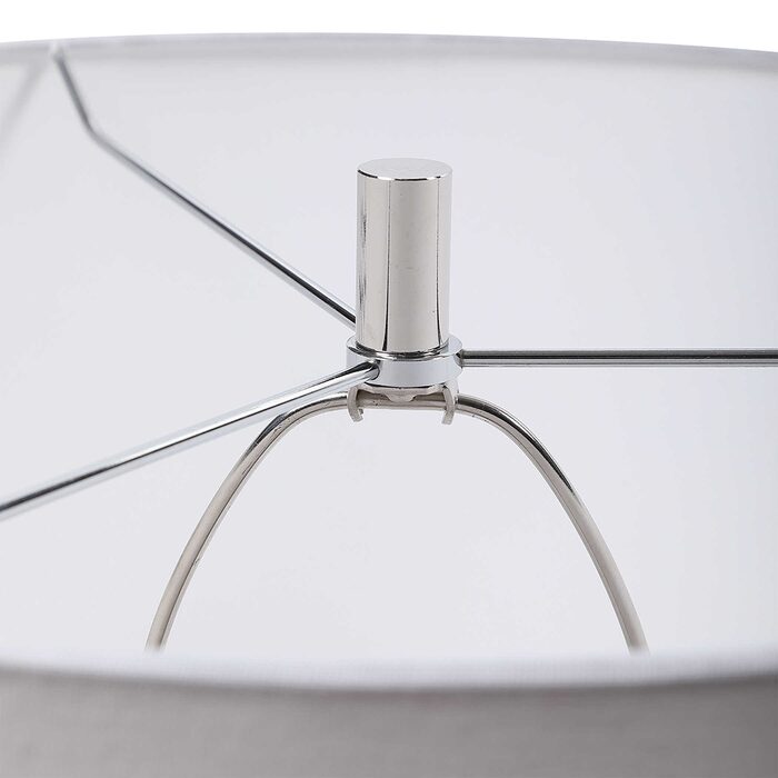 The lamp is complimented by a white linen fabric drum shade.