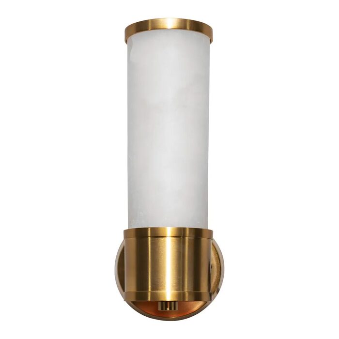 Elegant and sophisticated, the Shaffer wall sconce combines the timeless qualities of natural alabaster stone with antique brass finished hardware.