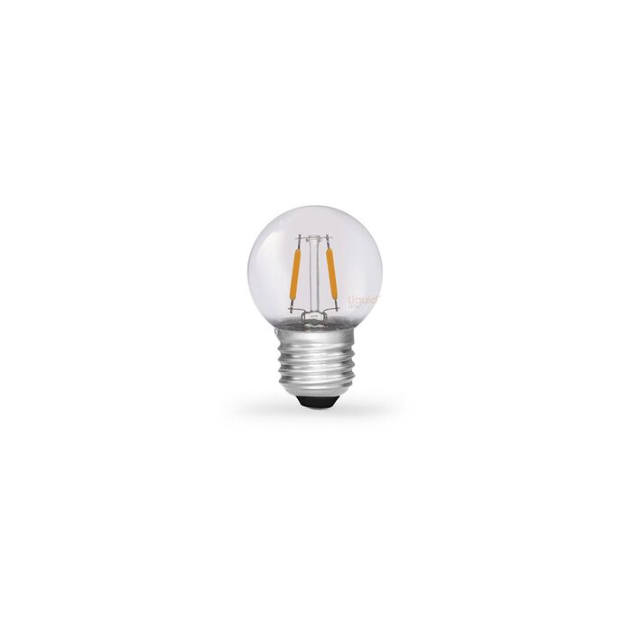 This 1W fancy round 240V shatterproof LED light bulb is made from clear heat-and-impact resistant polycarbonate plastic, an ideal bulb for festoon strings or any light fixture with the regular Edison Screw (E27) socket.