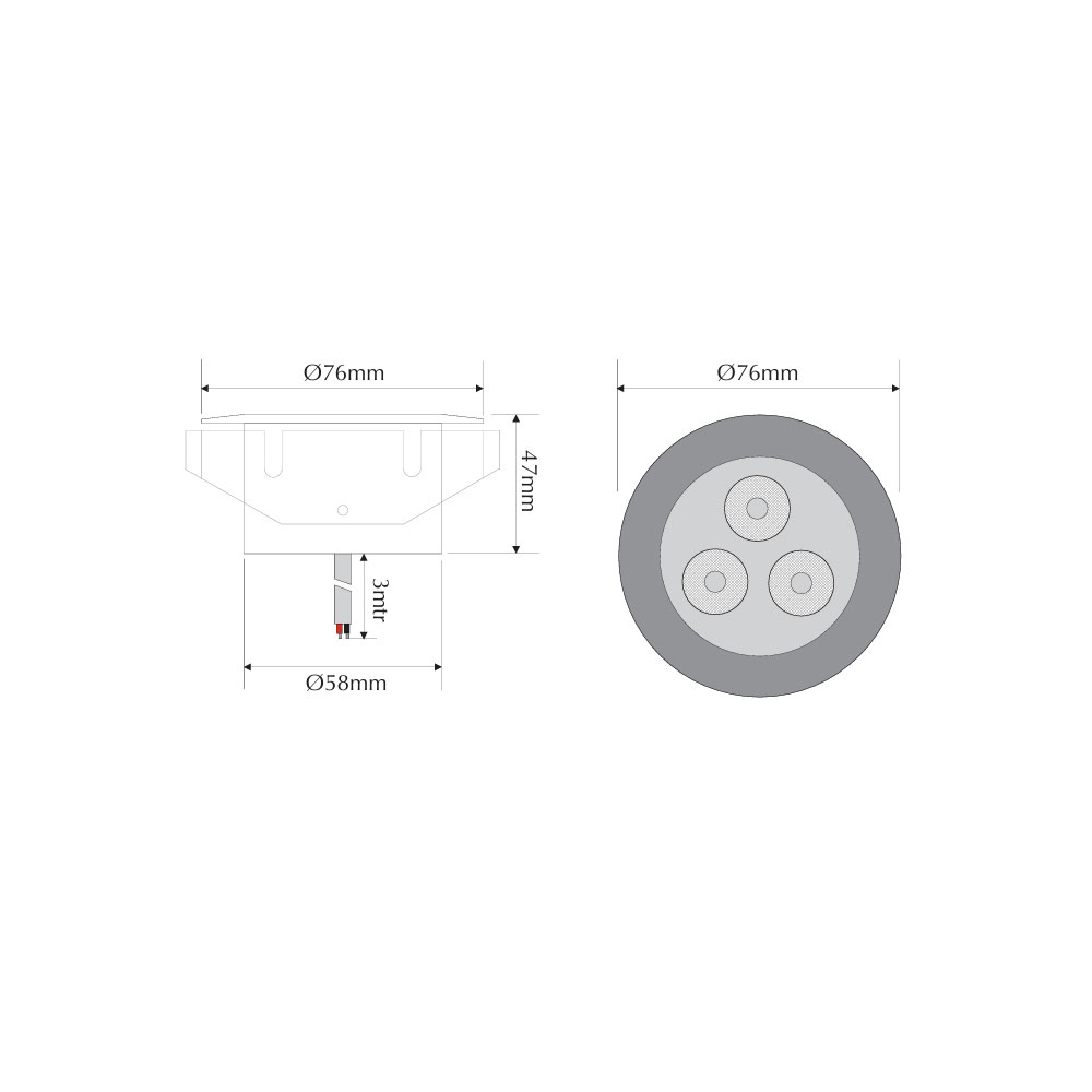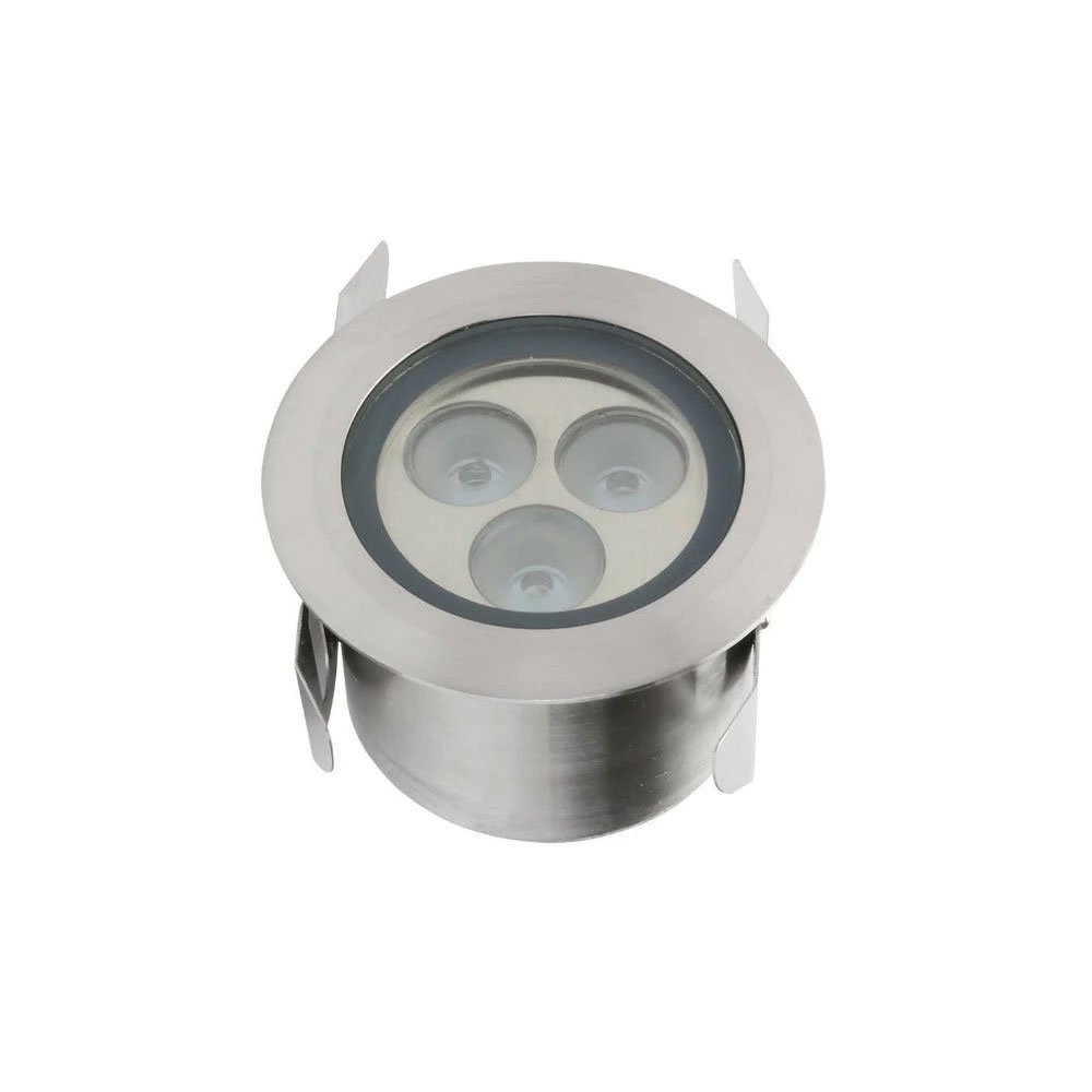 3 x 1W LED inground light, 316 Stainless Steel, optic lens diffuser. Complete with 3 metres of rubberised cable. Non-dimmable.