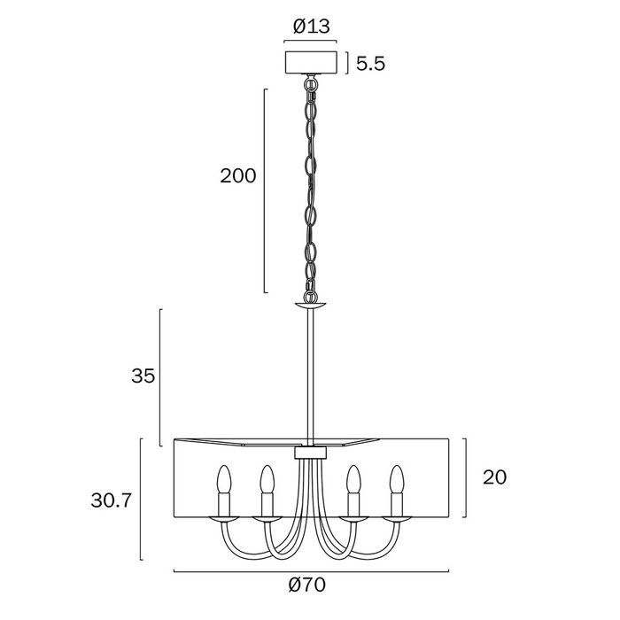 Designed for versatility, the Shiron comes with a 2-metre chain and is fully height adjustable, allowing you to customise it to suit your space perfectly.