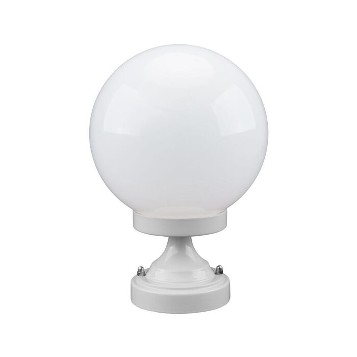Siena 1 light pillar mount, 80mm die-cast aluminium body complete with 200mm opal acrylic sphere. Made in Italy, assembled and powder coated in Australia.Can be used as a pillar mount or CTC.