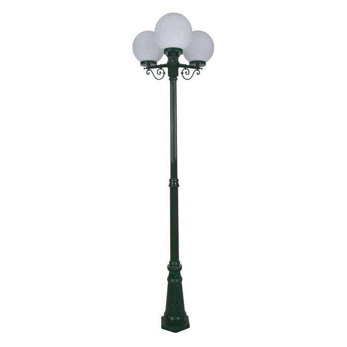 Siena 3 light 2.35m post lights, die-cast aluminium body complete with 250mm opal acrylic sphere. Made in Italy, assembled and powder coated in Australia.