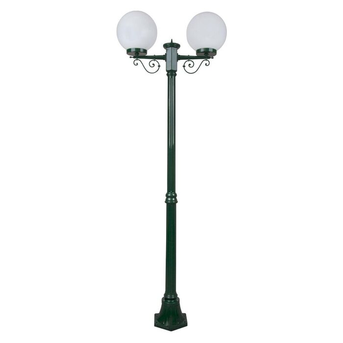 Siena 2 light 2.05m post light, die-cast aluminium body complete with 300mm opal acrylic sphere. Made in Italy, assembled and powder coated in Australia.