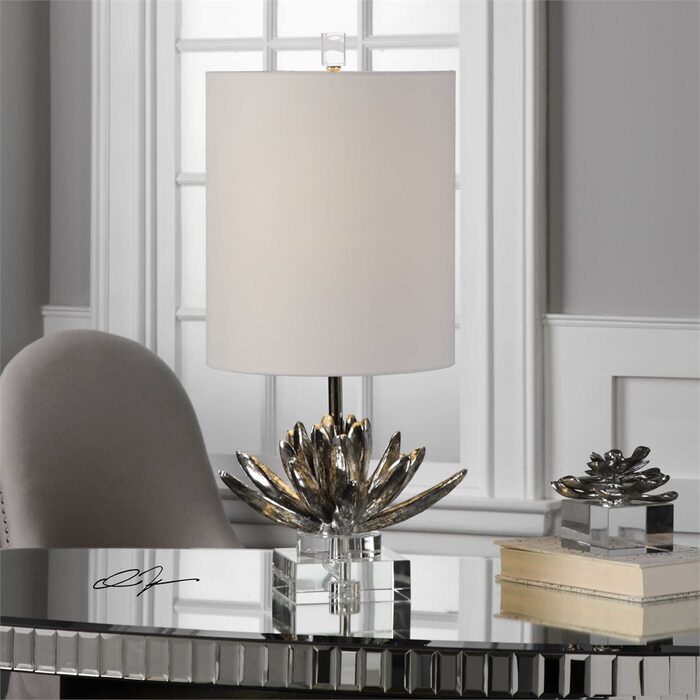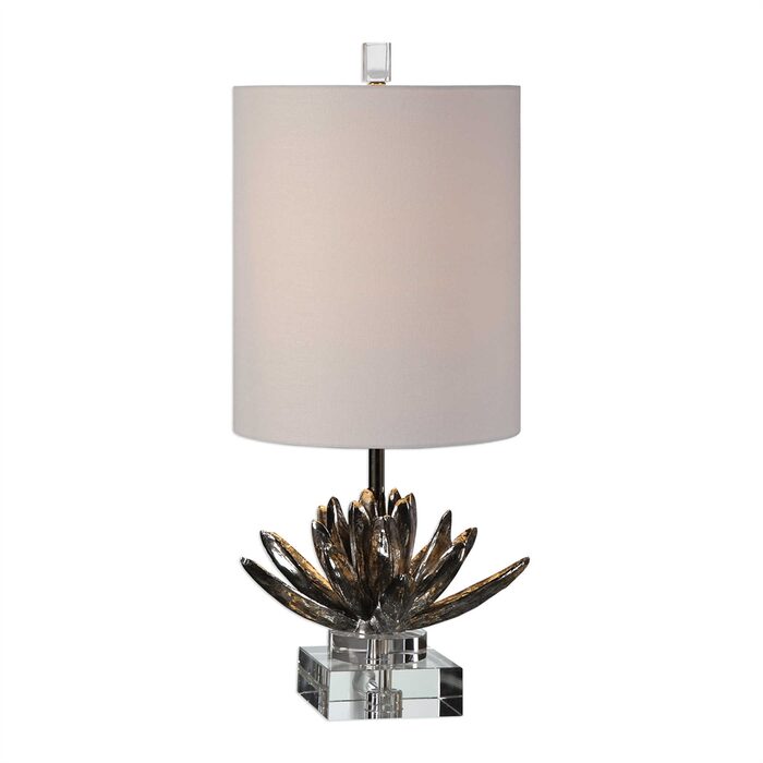 Simple elegance is achieved by this antiqued, metallic silver, lotus bloom that appears to be floating on a clear crystal foot.