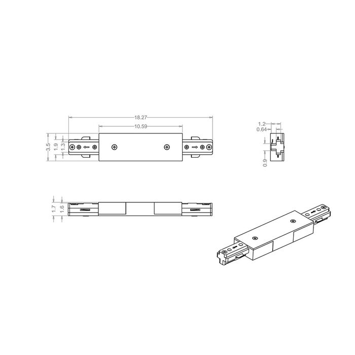 This joiner is suitable for abutting two lengths of track in a straight line. Power feeds into this joiner, which powers each length of track.