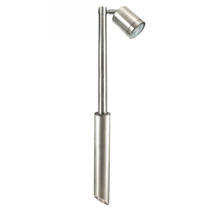 The fixture has a fully adjustable arm which allows the single spotlight to be aimed in any direction.