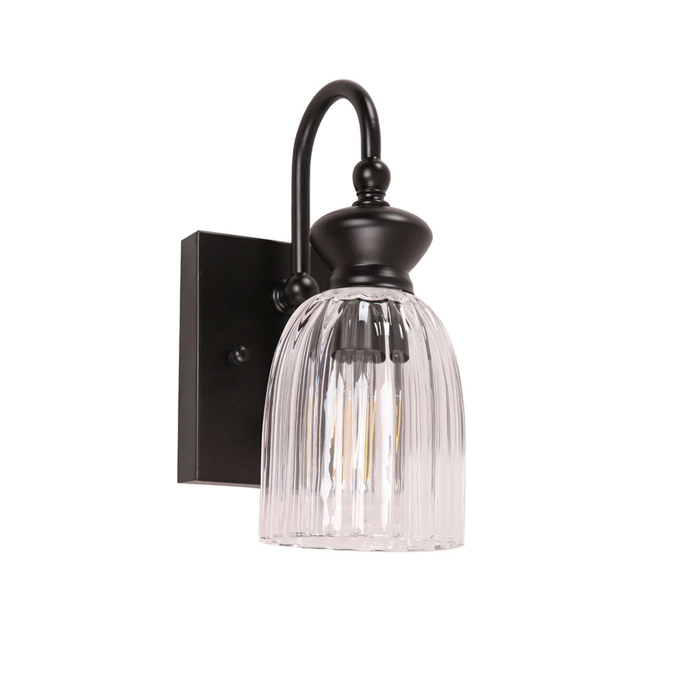 Crafted from durable iron and clear glass, this stylish fixture brings a clean, contemporary touch to any indoor space.
