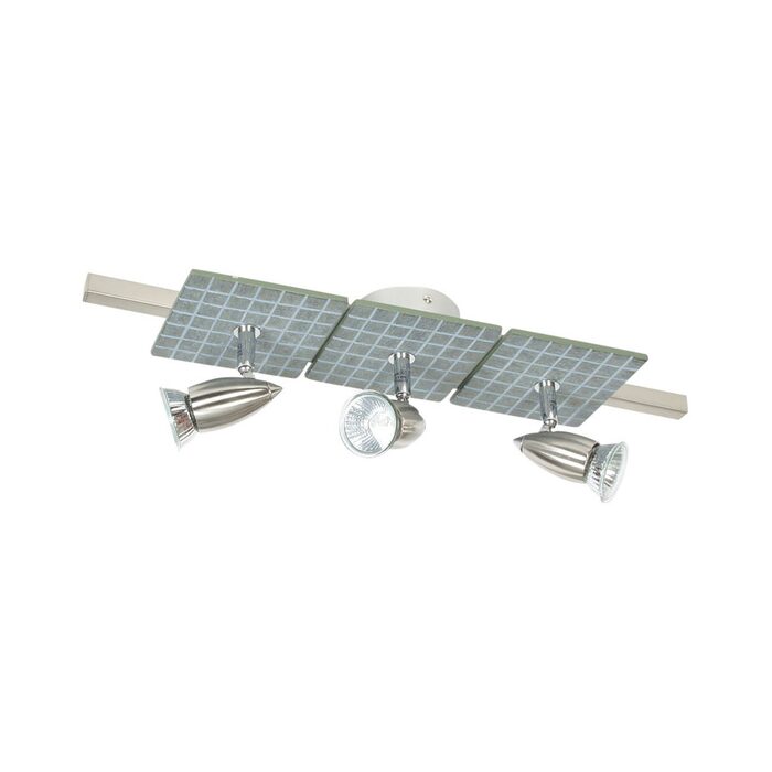 Brushed chrome and chrome, surface mounted spotlight with a tile plate feature. This fitting offers directional light.