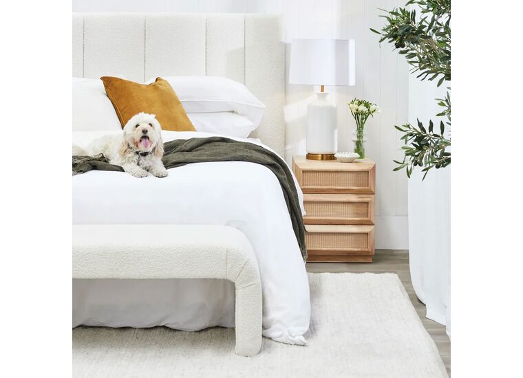 A beautiful complement to any interior, the Soho king bedhead features detailed panelling upholstered in a gorgeous white boucle.