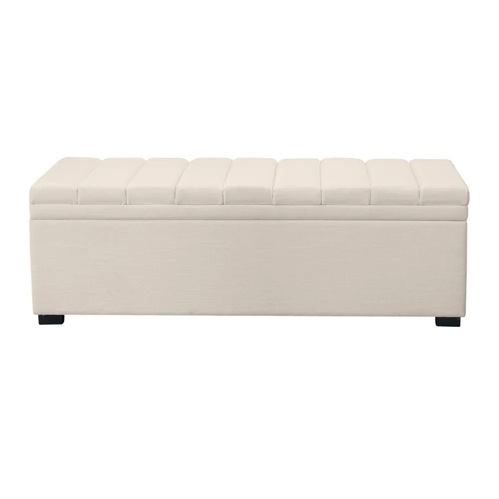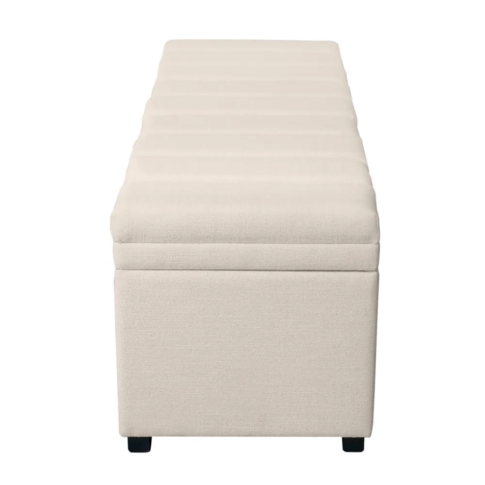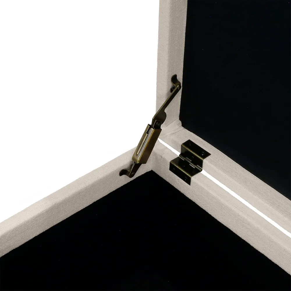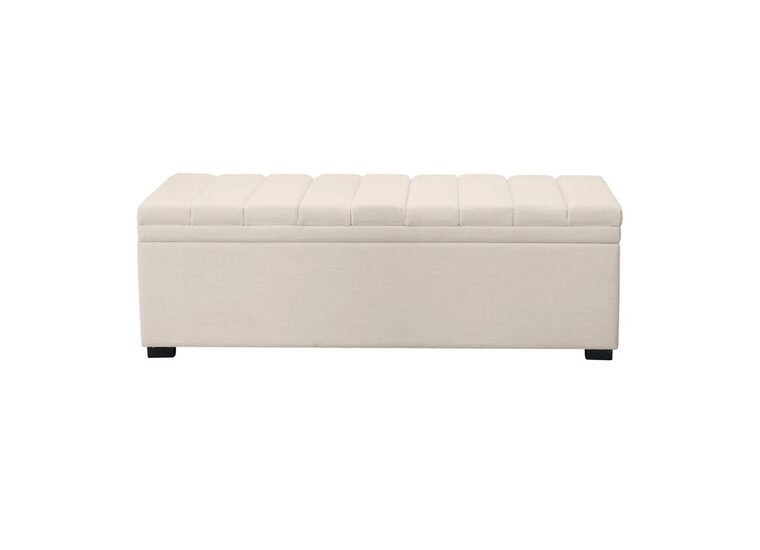 Elevate your home with the sophisticated Soho Storage Bench Ottoman, upholstered in sumptuous ivory fabric for a fresh, versatile addition to this elegant range.