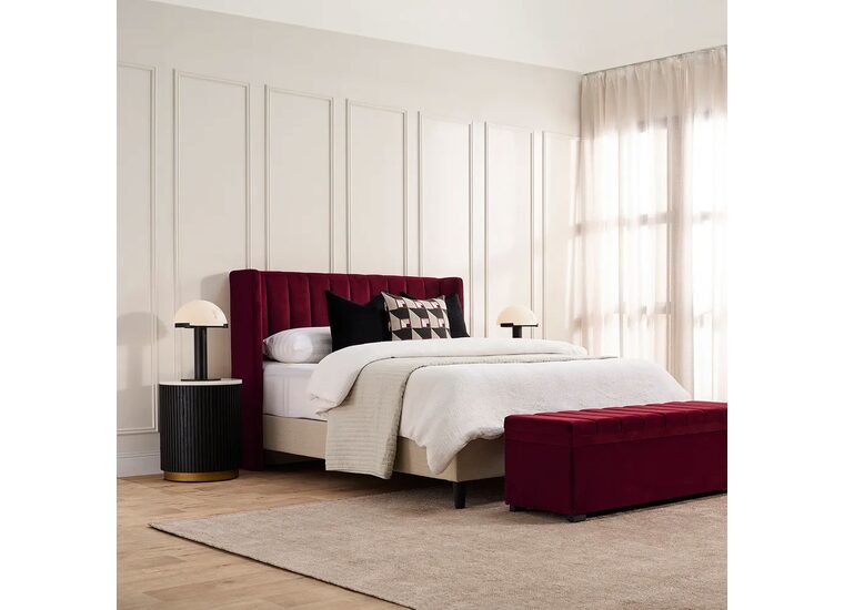 Elevate your interior with the sophisticated Soho Storage Bench Ottoman, upholstered in plush wine velvet for a vibrant addition to this elegant and functional range.
