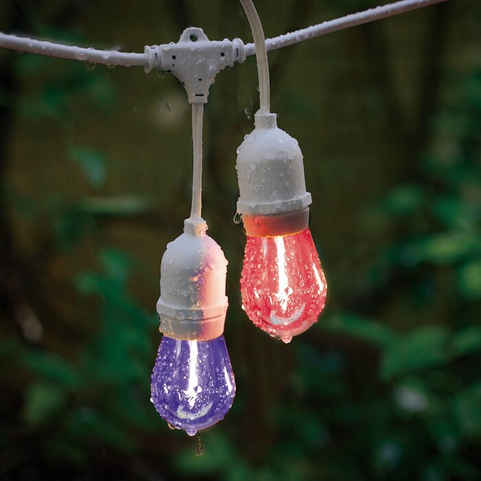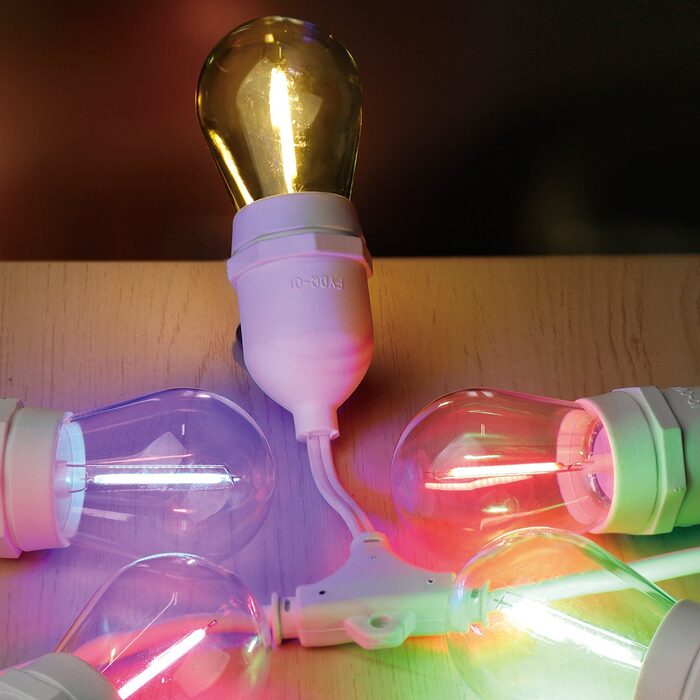 Festoon lights indoor or outdoors string comes with 10 x LED 1W coloured light bulbs.