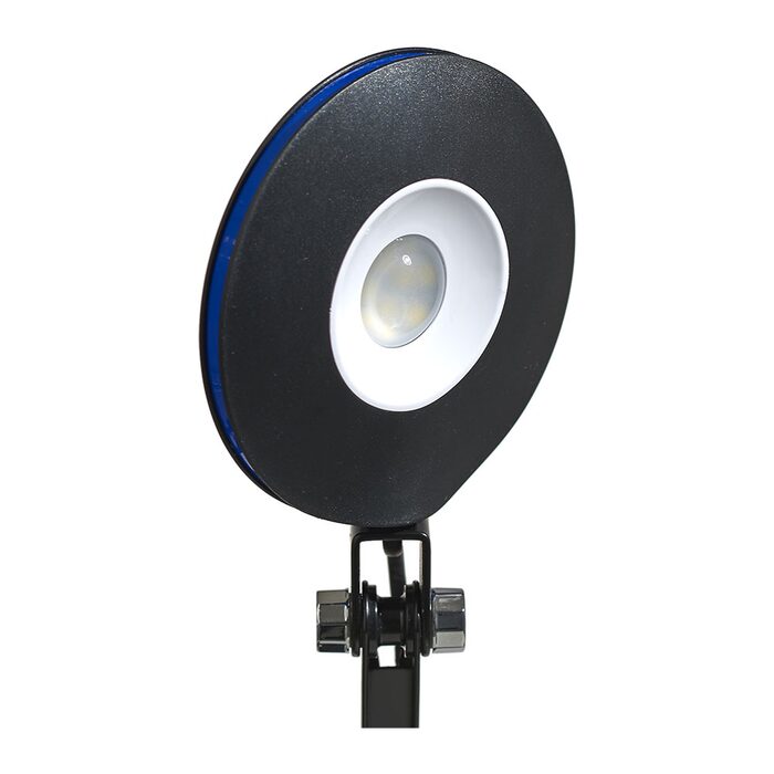 Complete with heavy base and plug-in extra low voltage power supply. Lamp head is tiltable up and down and side to side