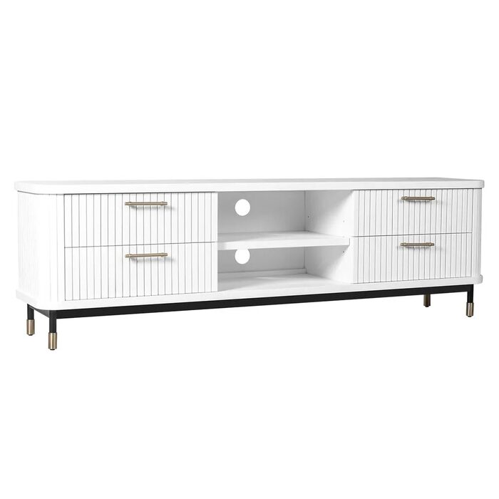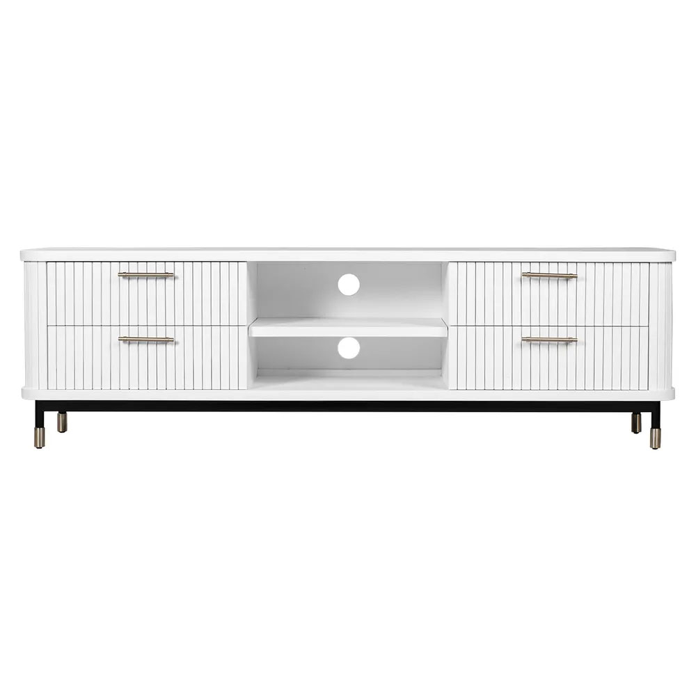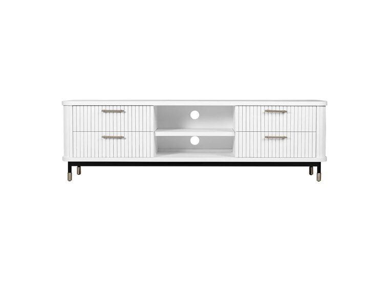 The Sophia Entertainment Unit in White blends functional design with modern refinement, offering a sleek storage solution for contemporary living rooms.