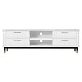 Four drawers and two open shelves provide generous space for media components, while a rear cable hole with matching grommet ensures a clutter-free setup.