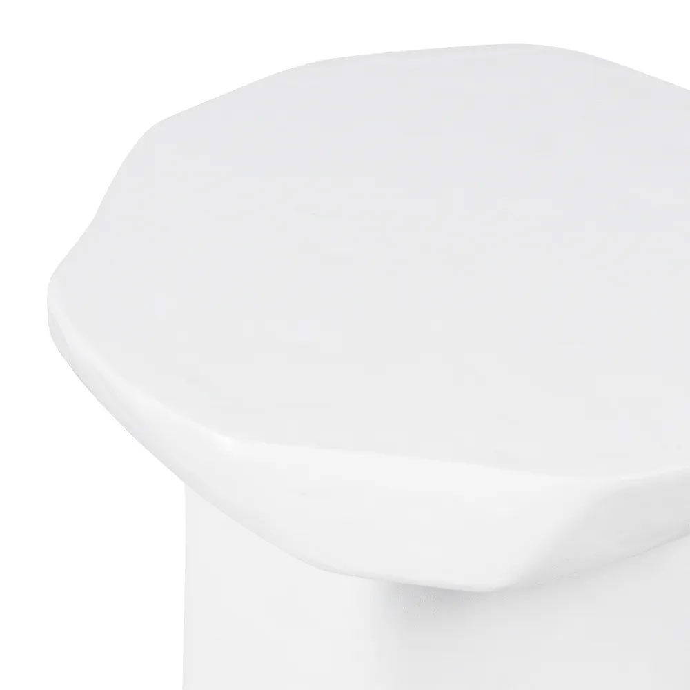 A bold yet refined statement, the Sorrento Side Table celebrates organic form with its sculptural concrete design and matte hammered white finish.