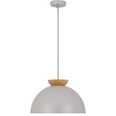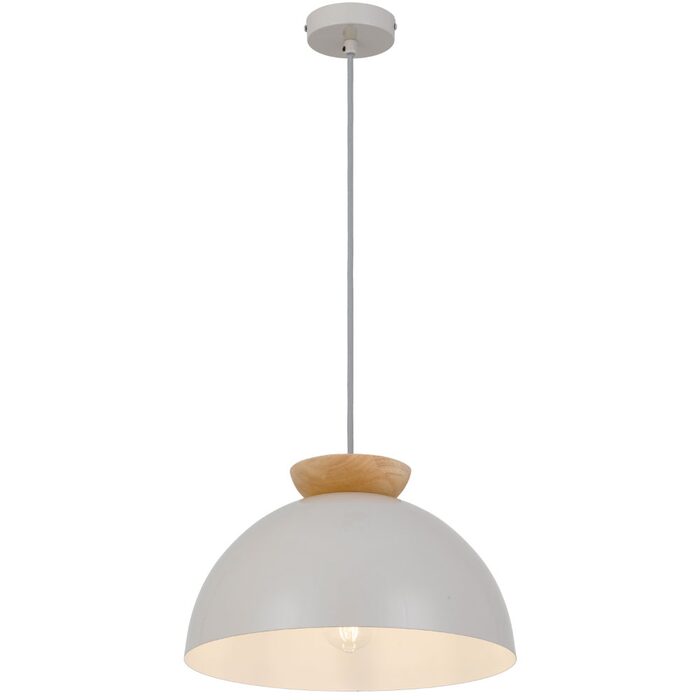 The Sovin Pendant Light features a sleek light grey finish paired with natural oak accents, exuding Scandinavian charm.