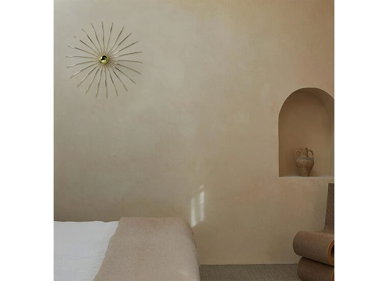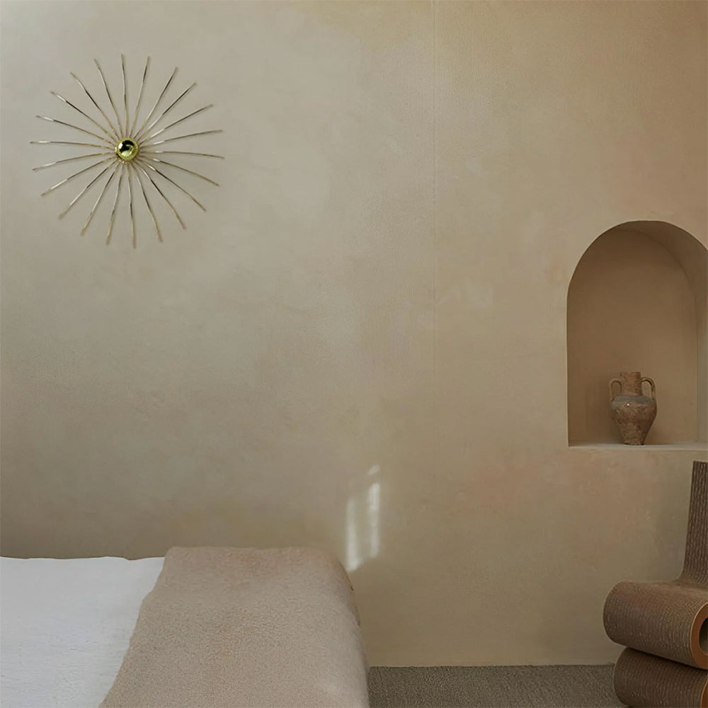 The wall lamp was designed by Fornasevi and manufactured by Aromas for decorative night lighting for any home interior.
