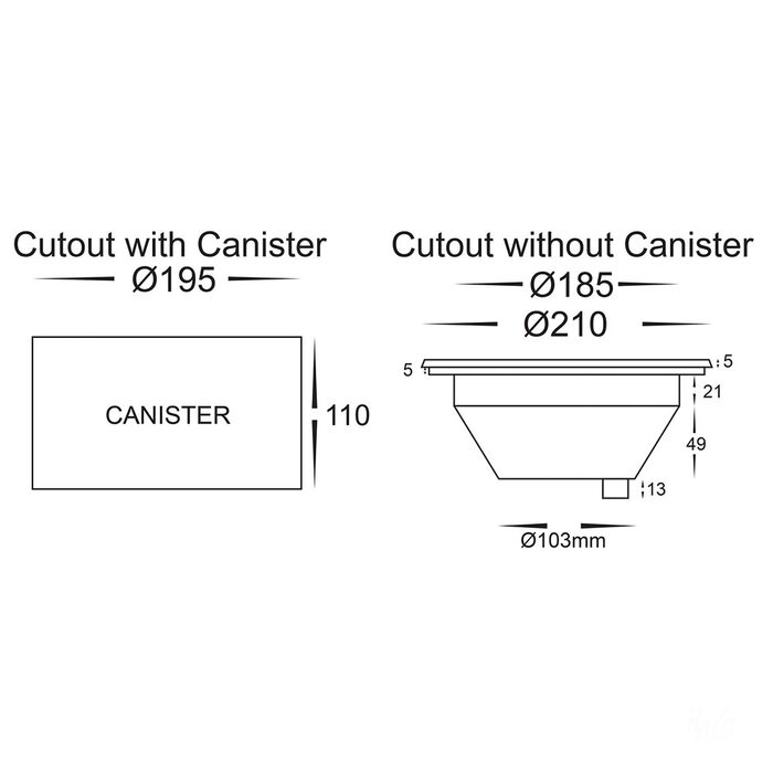 - Cut-out Size Diameter: 185mm (Without Canister)