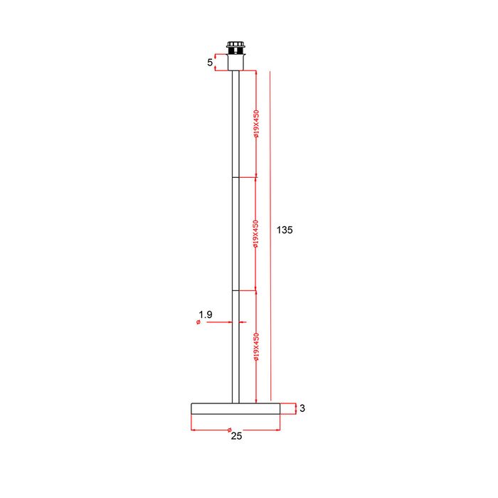 Spindle floor lamp base with a European E27 lamp holder, available in a choice of colour finishes. An easy to operate on/off foot switch is located on the cord.