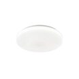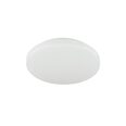 This sleek, flush-mount fixture features a minimalist white plastic shade and a metal base for a seamless look in any room.