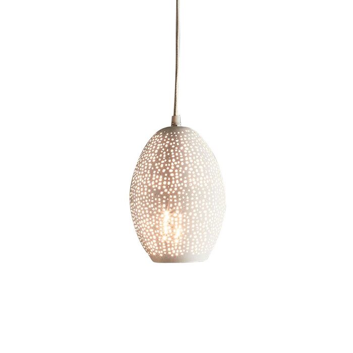 The stella is a white lozenge shaped pendant with delicate perforations for a wonderful glow.