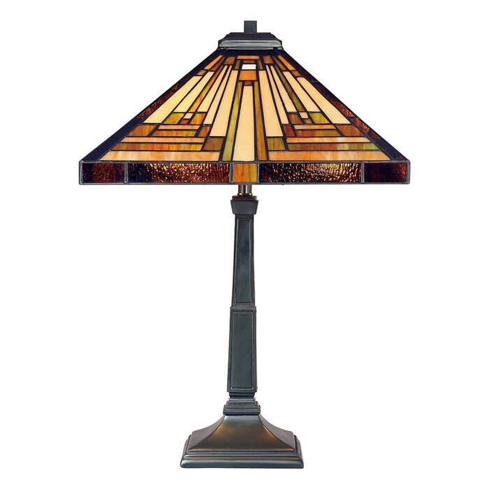 This hand-crafted Tiffany style collection illuminates your home with warm shades of amber, bisque and earthy green, arranged in a clean and simple geometric pattern reminiscent of the works of Frank Lloyd Wright.