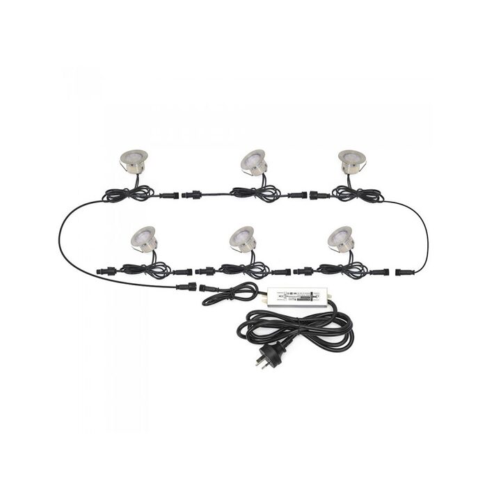 - Kit set includes: 6 x LED lights - 1W each, 75 lumens each, 120 degree beam angle. 1 x 10W 12V DC driver with cord and plug