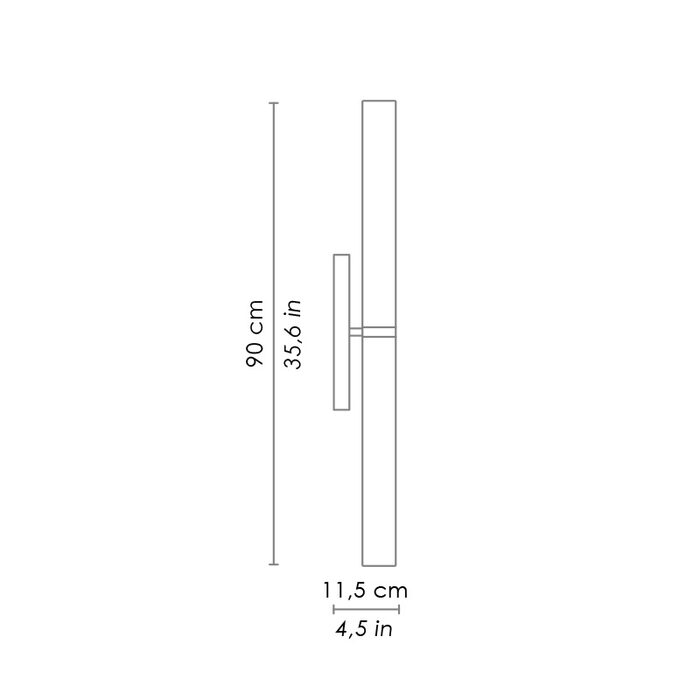 A collection of wall lamps featuring a set of cylinders in satin finish triplex opal blown glass, closed at the ends for an “all light” effect and optimum luminescence.