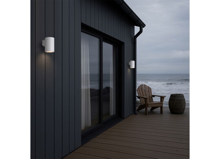 Offered in a modern black or white finish, it features 3CCT selectable colour temperatures (2700K–4000K), integrated energy-efficient LED technology, and an IP65 rating—making it ideal for outdoor and seaside environments.