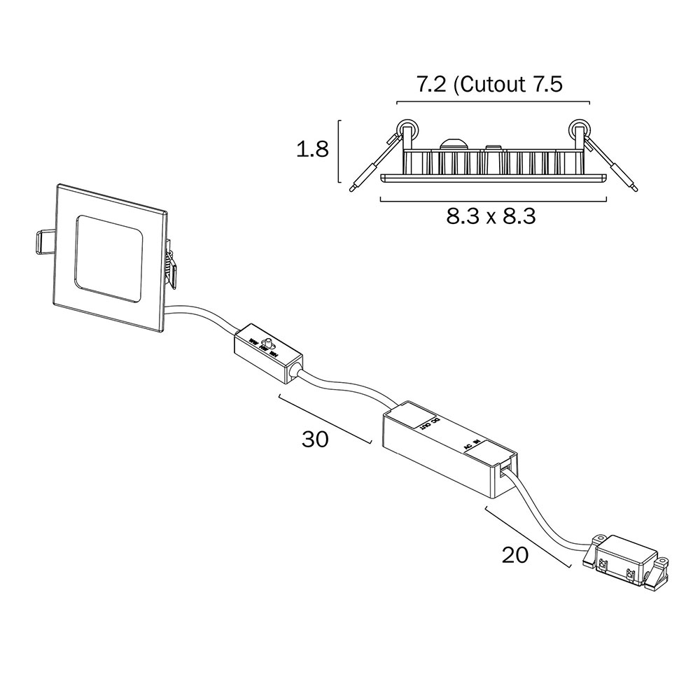 - Cutout: 75mm x 75mm