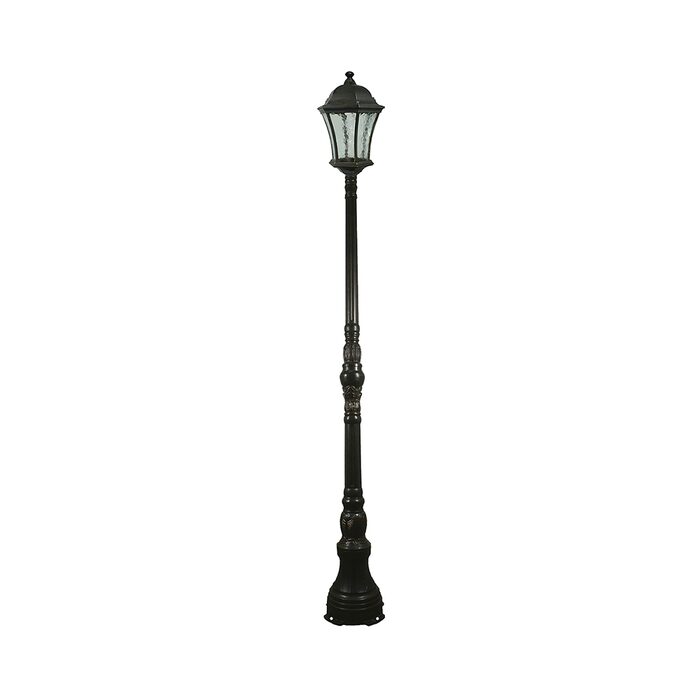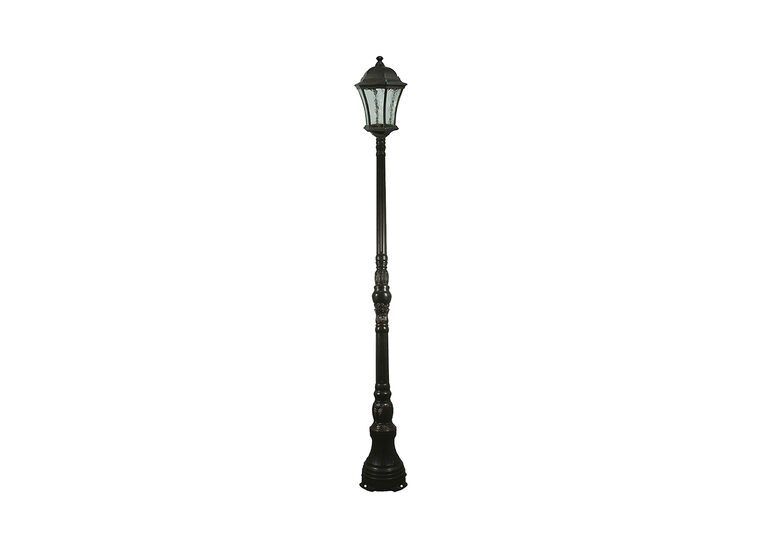 Strand 1 light medium lantern style light on the domain powdercoated alluminium post. Domain post is preassembled into 3 manageable sections and has a 4 hole heavy duty floor mounting.